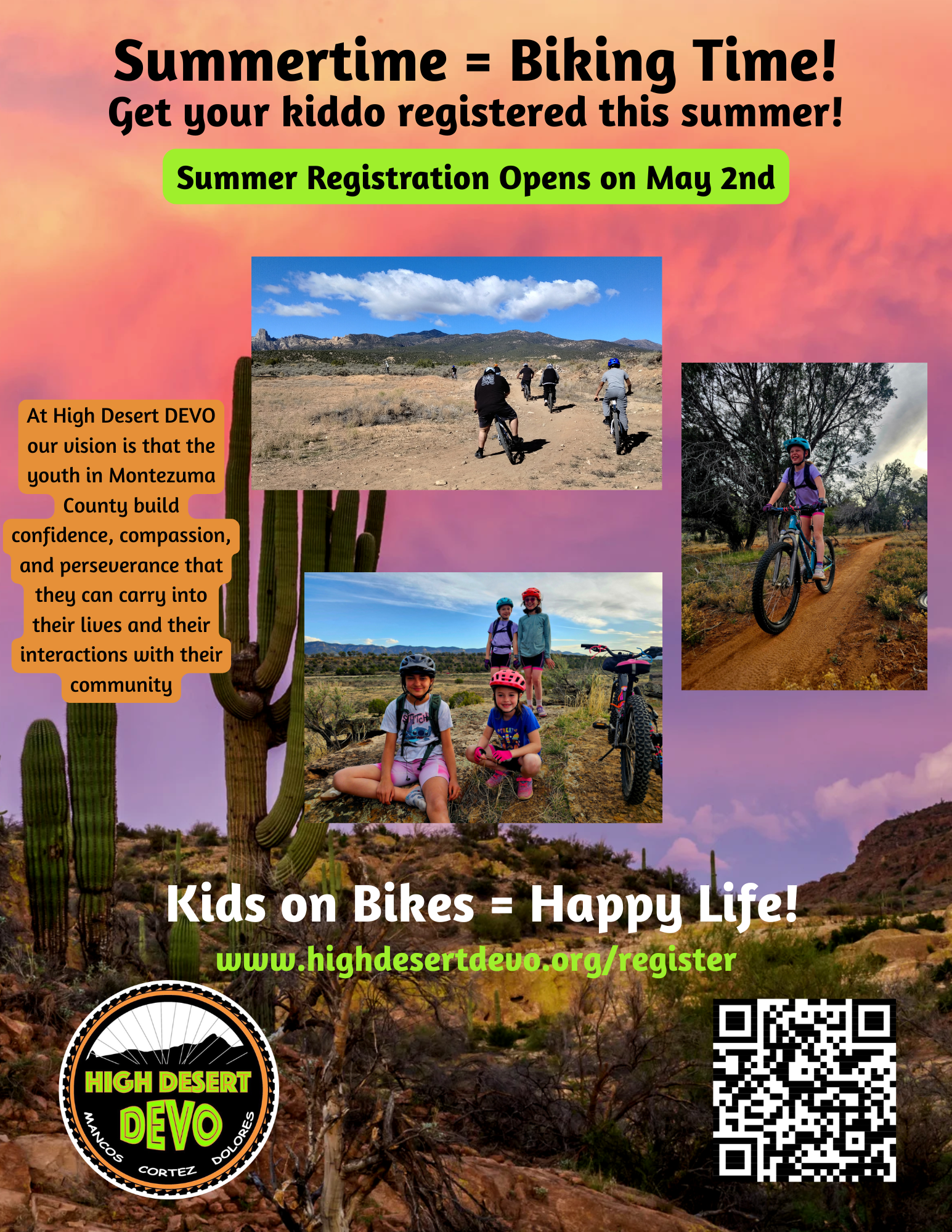 At High Desert DEVO our vision is that the youth in Montezuma County build confidence, compassion, and perseverance that they can carry into their lives and their interactions with our community.